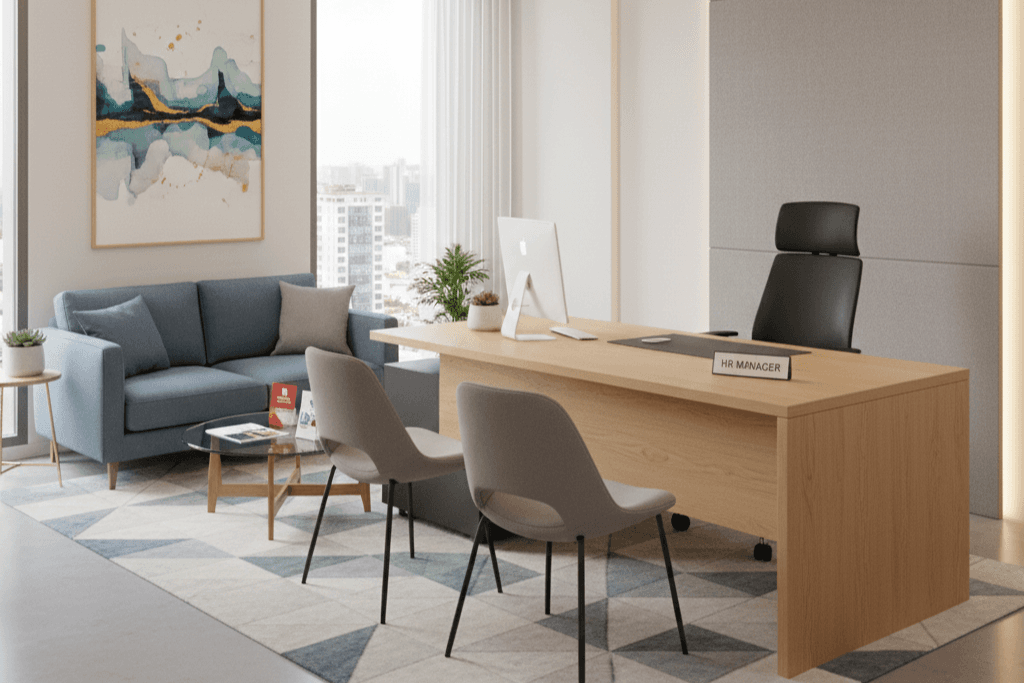 Next comes the furniture part. Desks, chairs, and storage units are placed as per the plan. The office interior designer company ensures the furniture matches the design theme.