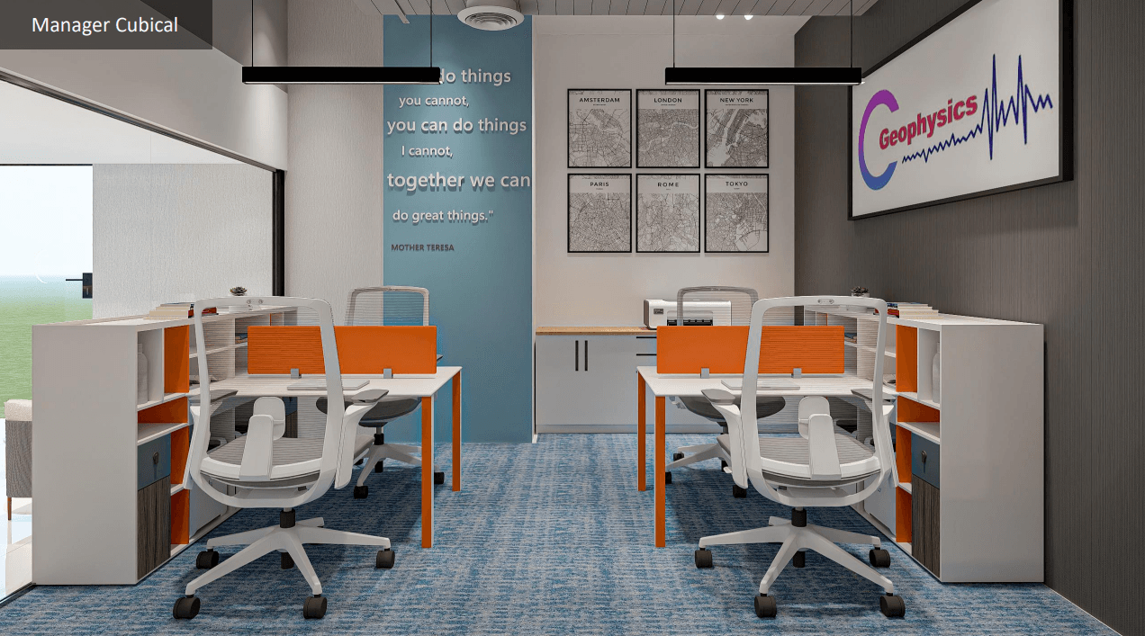 Office 3D layout means your full office design is shown in a three-dimensional view. You can see your workstations, cabins, meeting rooms, and café areas before actual work starts.