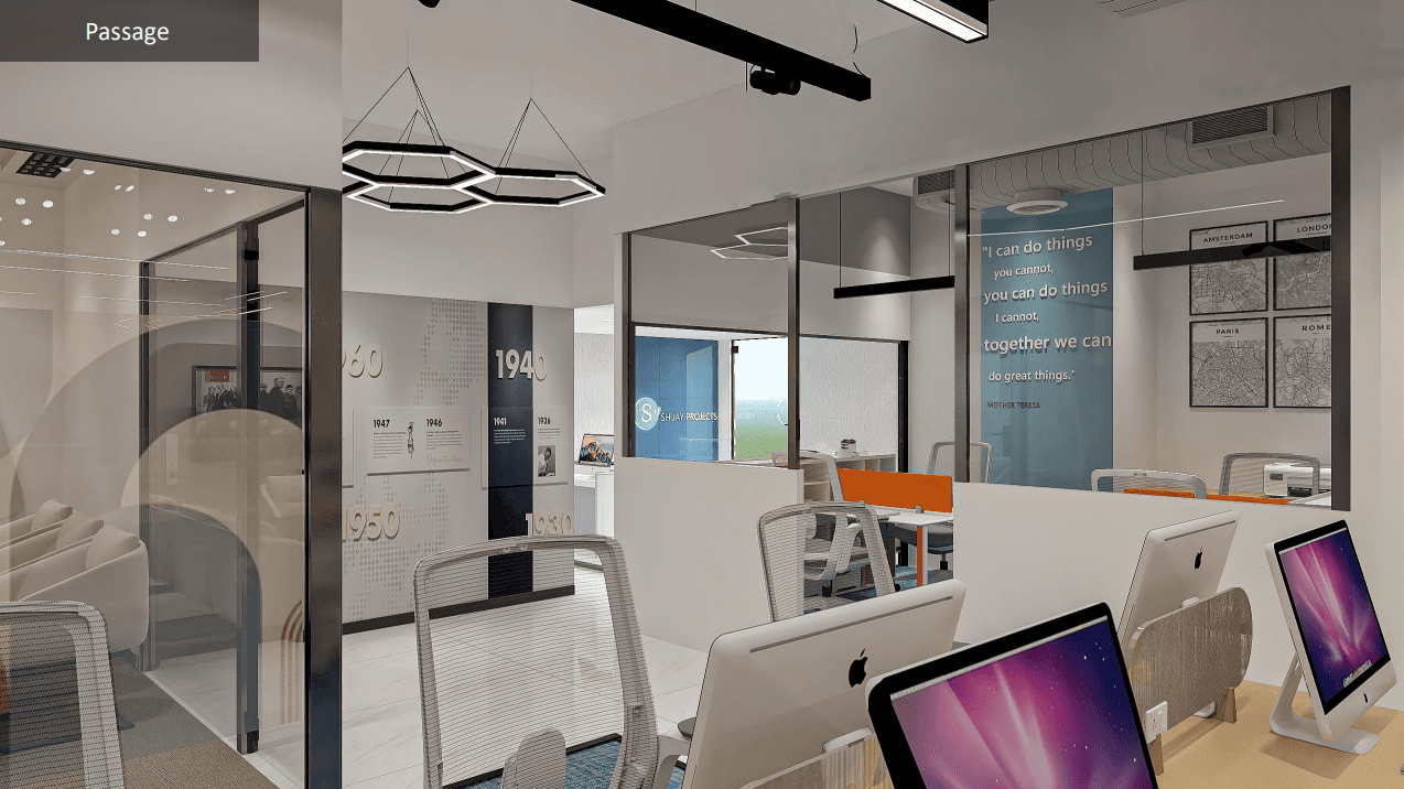 You see bold wall art, simple ceilings, and neat lighting lines. That is why these offices feel fresh but still easy to shift or grow.